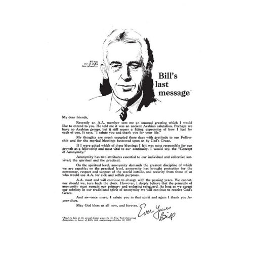 Stresses the spiritual and practical side of anonymity. (Read by Lois at the NY Intergroup Association dinner, 1970.)